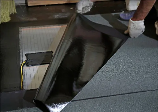 アンダーシートの剥離紙を剥がし、ヒーターの貼付け